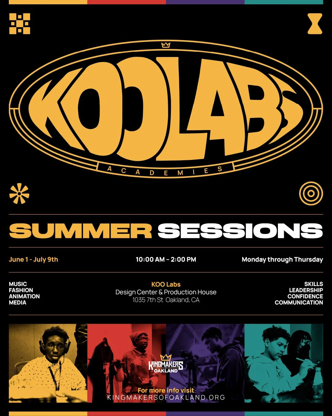 This is not just a summer camp program but an entry point into the world of professional creative work. Students will have the opportunity to learn from industry professionals and gain hands-on experience working on real-world projects at our KOOLabs Design Center and Production House in the heart of West Oakland.